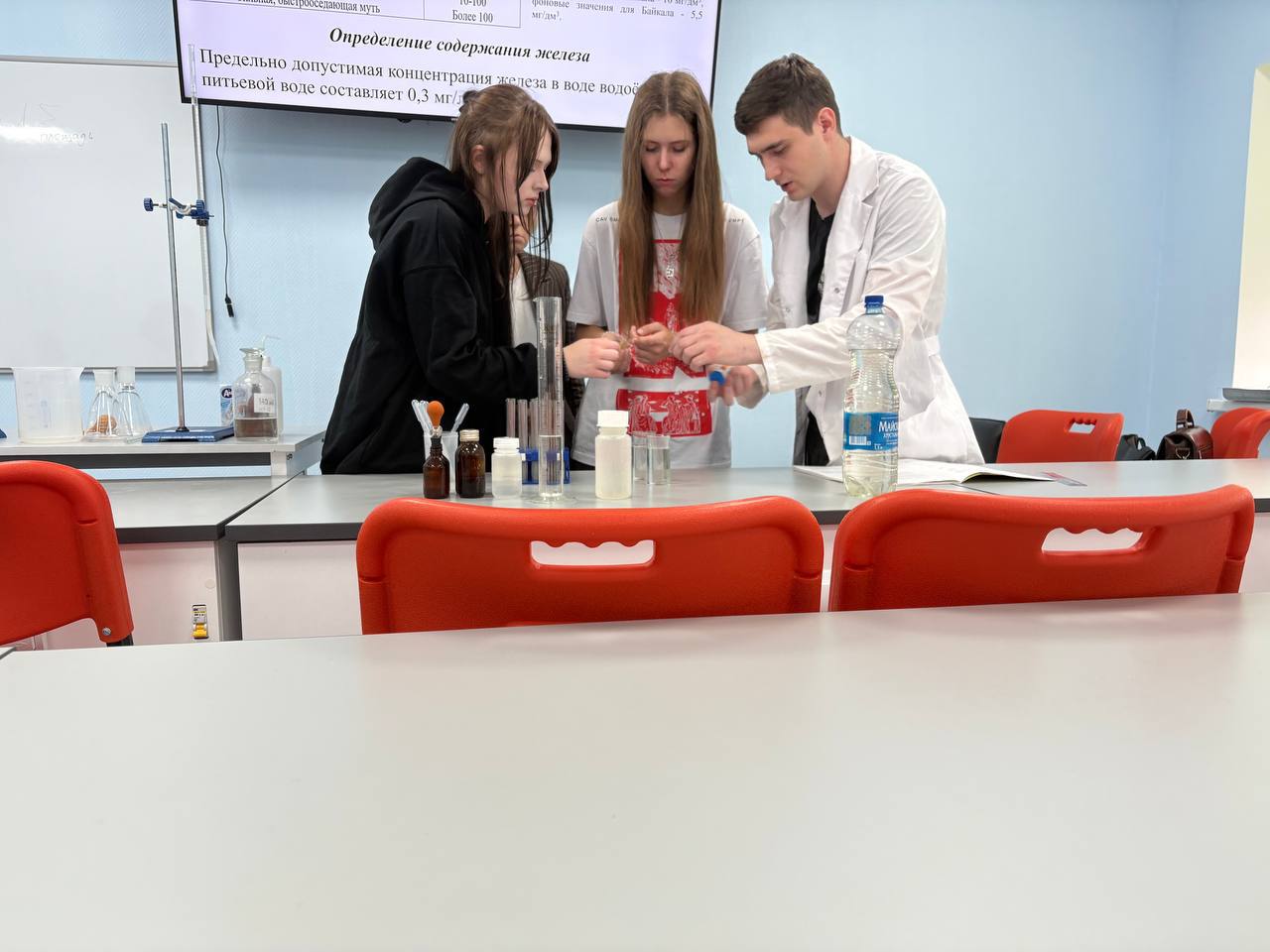 29.10.25 учащиеся профильных 10-11 классов посетили Институт формации, химии и биологии НИУ БелГУ, где студенты и преподаватели в целях профориентации показали учащимся методы анализа воды из разных источников, молока, овощей, фруктов и колбасных  изделий на нитриты, а также познакомили с методами криминалистики. Учащиеся проводили анализ под руководством студентов и преподавателей.